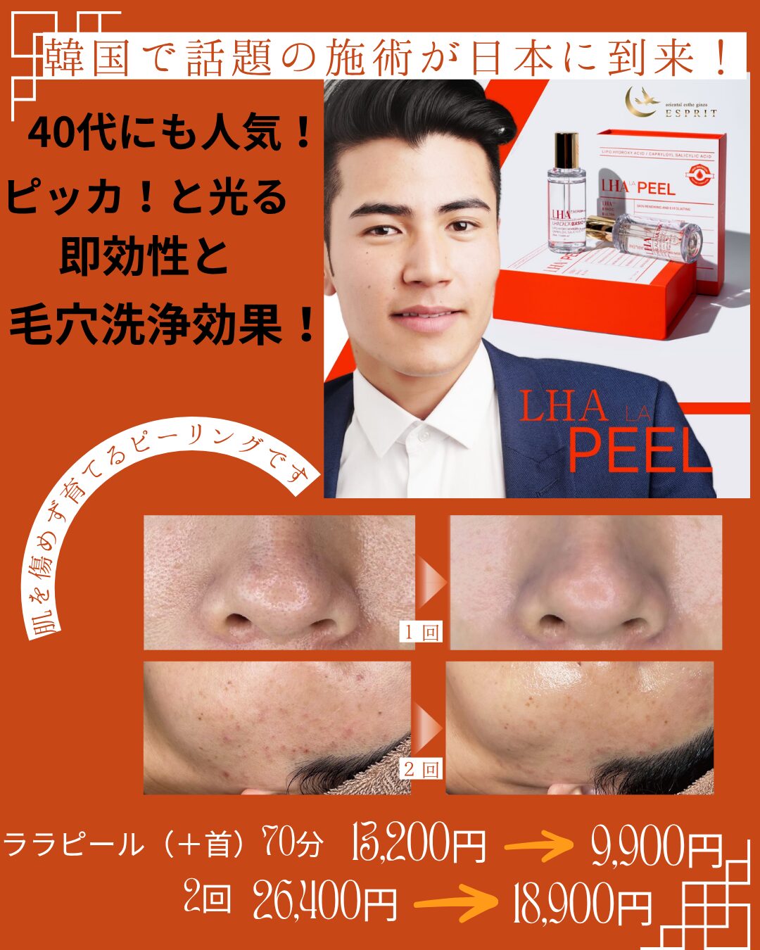 韓国発、世界15か国以上、3.000を超える美容医療クリニックで使用される最先端/世界発特許成分の第四世代ピーリング「ララピール」